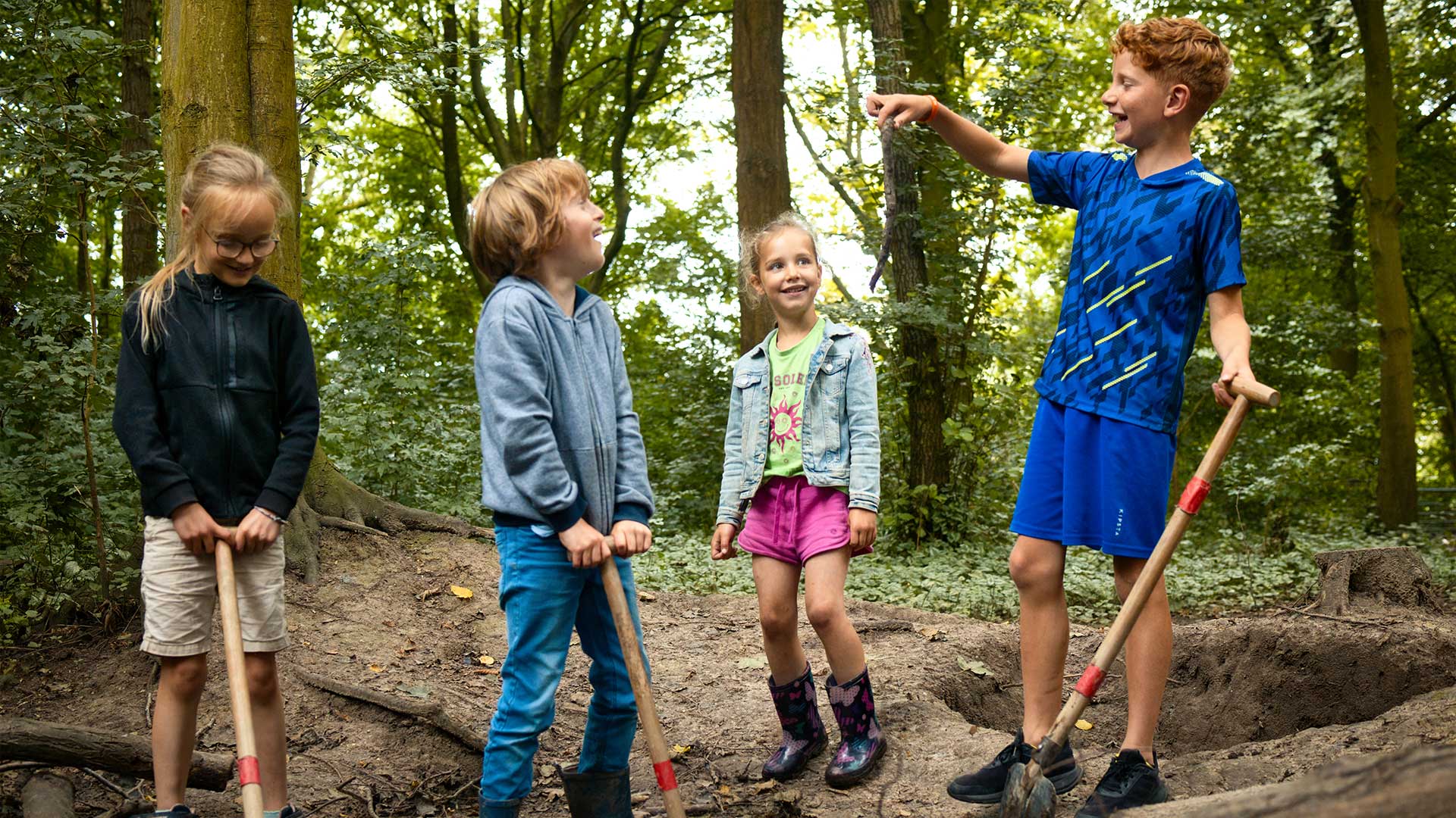 Bij ons draait het om ontdekken, ontmoeten en plezier maken! Kinderen kunnen zich helemaal uitleven in het groen, waar ze hutten bouwen en de natuur op speelse wijze verkennen.